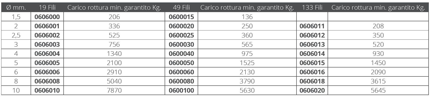 Wire rope AISI 316 133-wire 3 mm