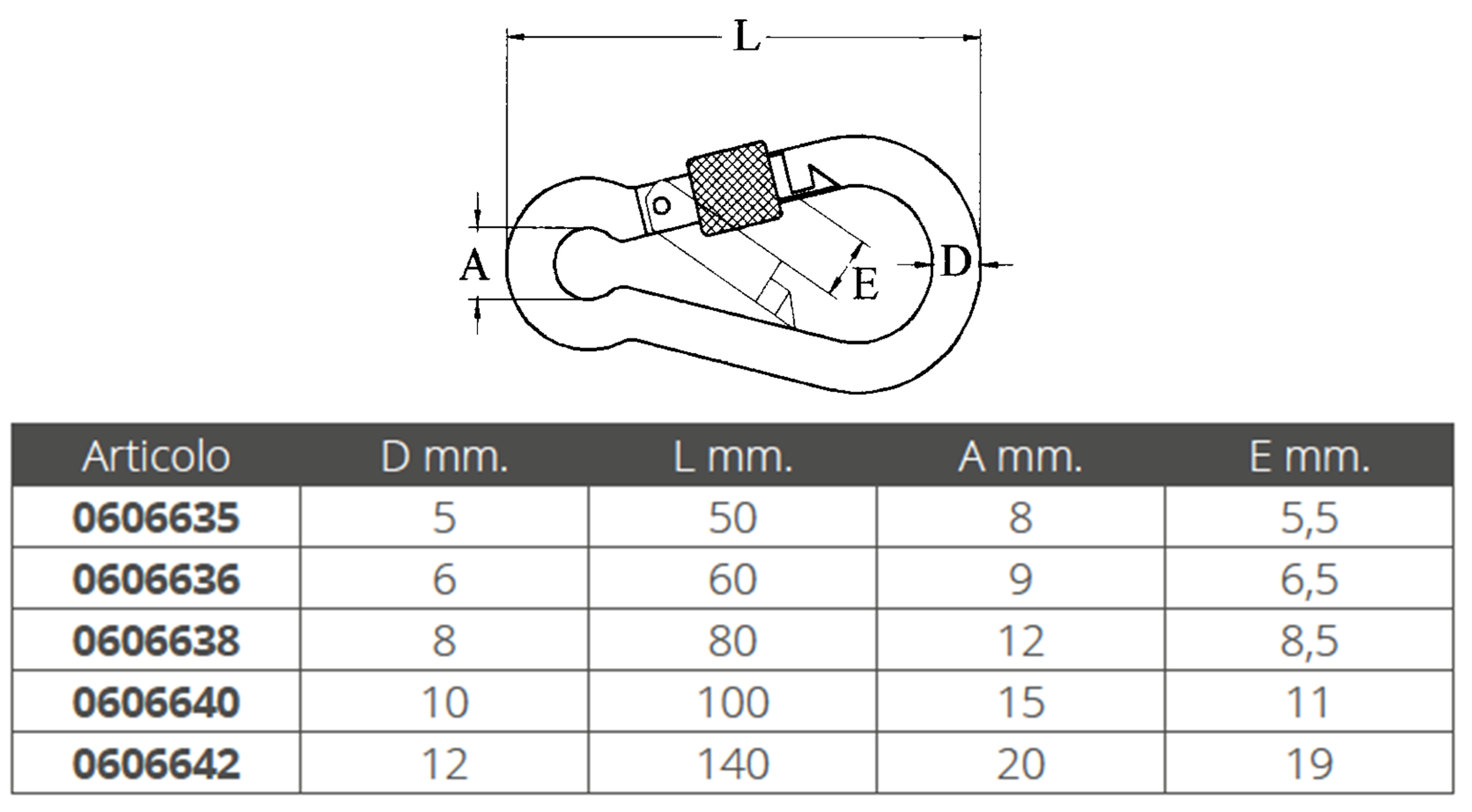 CARABINE WITH SAFETY SCREW AISI 316 Ø MM.5X50