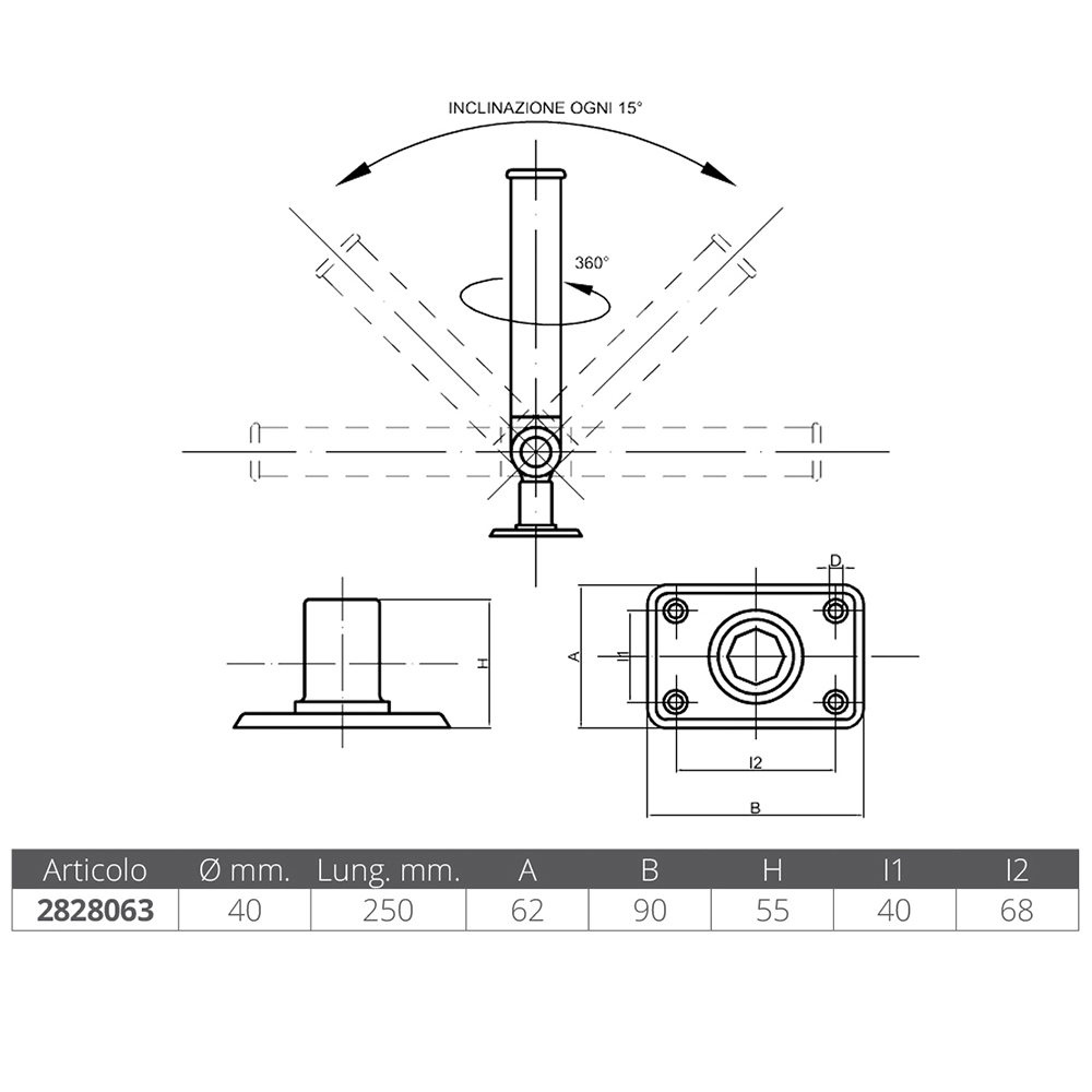 Rod holder AISI316 for pipes Ø 25/30 mm