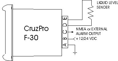 The CruzPro F60 via digital display provides the fuel level reading. The level can be displayed in Liters / Gallons or as a percentage (0-100%) up to 999 Gallons / Liters. It also displays partial, total and remaining fuel consumed. Readings can be taken in liters, gallons or as a percentage. The high and low fuel level alarm, user selectable, is very useful. It works with common level sensors such as 91005 and 91007. Supply voltage 12/24 Vdc. NMEA 0183 output or external alarm output, which can also be used to control a fuel transfer pump.
