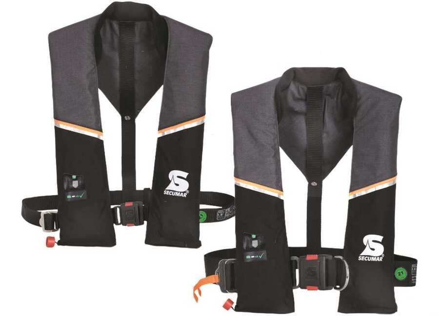 Secumar Ultra 170 inflatable lifejacket • Automatic activation - ISO 12402-3 certified • Buoyancy class: 150N • Real buoyancy: 165N • Size: one size for adults >50 kg • Standard type: Adjustable quick release buckle • Harness type: Harness with quick release buckle, Stainless Steel ring and safety strap • Navigation: Pleasure craft within and beyond 6 miles from the coast