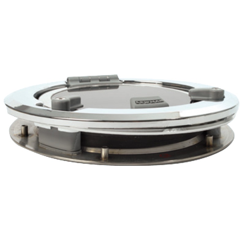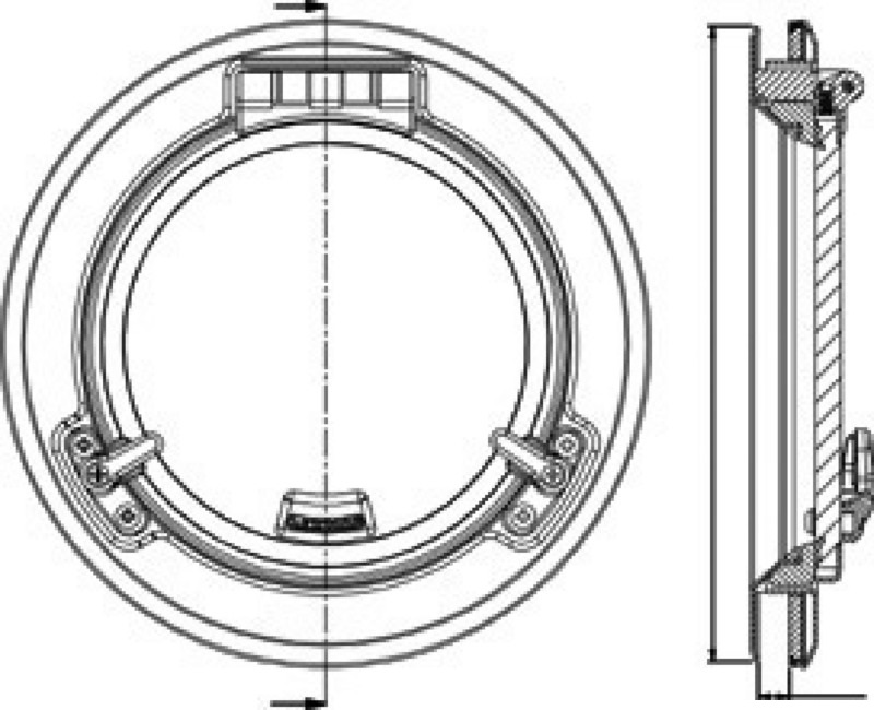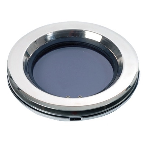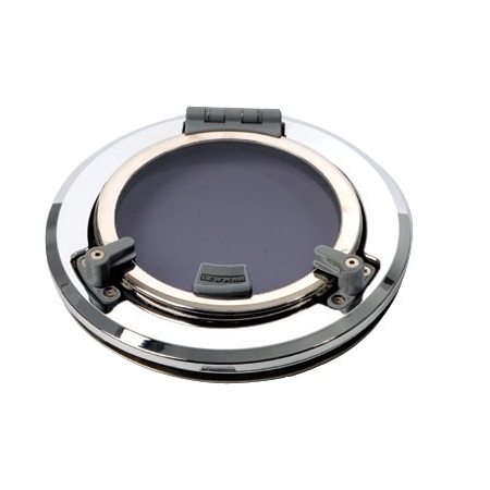 Supplied complete with chromed ABS finishing counterflange and mounting screws, smoked glass. Installation by means of a ring nut with threaded holes which makes the operation easily and quickly feasible by one person. 180 ° opening. CE approved category B Area 1.