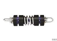 MK45 hybrid mooring spring, for boats from 4 to 16 tons. The spring is supported by elastomers which increase its inertial load. - Progressive damping force ↵- Silent and stress resistant ↵- Internal components in 316 Steel without welded details ↵- Functioning without alterations due to temperature changes (from -20° to +80°)