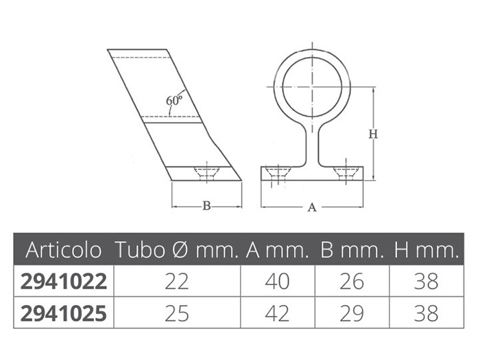 CENTRAL BRACKETS FOR HANDRAIL Ø MM.22