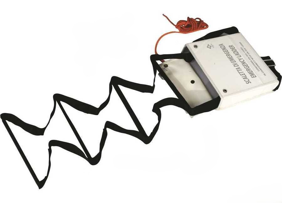 Universal safety ladder. Complies with ISO 15085. Suitable for all boats. Easy and safe to use, deployment is carried out from the water using the appropriate rope. Made of polyester-tape with fiberglass steps. Includes sturdy Polyester fabric container 28x26x6 cm. Fixing to the pulpit using two buckles and two spring buttons.