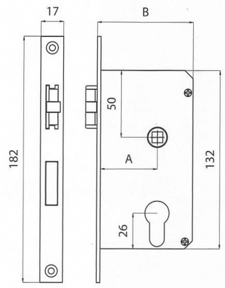 Mortise door lock mm. 132x70