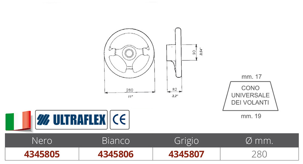 Grey v45 steering wheel mm.280