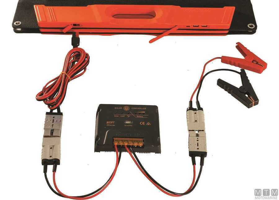 Light and resistant semi-flexible solar panels superior quality and high efficiency monocrystalline silicon cells for better output which can reach 22%. Foldable and portable like a briefcase with handle, thanks to the supplied tripod they can be positioned and oriented towards the sun, or fixed in position with double-sided tape or screws. Also used to charge cell phones, laptops or other USB charging devices.Complete with USB-A, 5V2A cable output, mobile phone and computer charger-B, 5V3A.With 2 x 90cm cables and MC4 connectors.To be completed with charge controller which has to be chosen according to the voltage (12 or 24V) of the battery to be charged and to the sum of amperage (Imp) of each single panel.↵Total panel thickness 3 mm.Wp = Power Rating (W) Imp = Max Power Amps (A) Voc = Open Circuit Voltage (V)