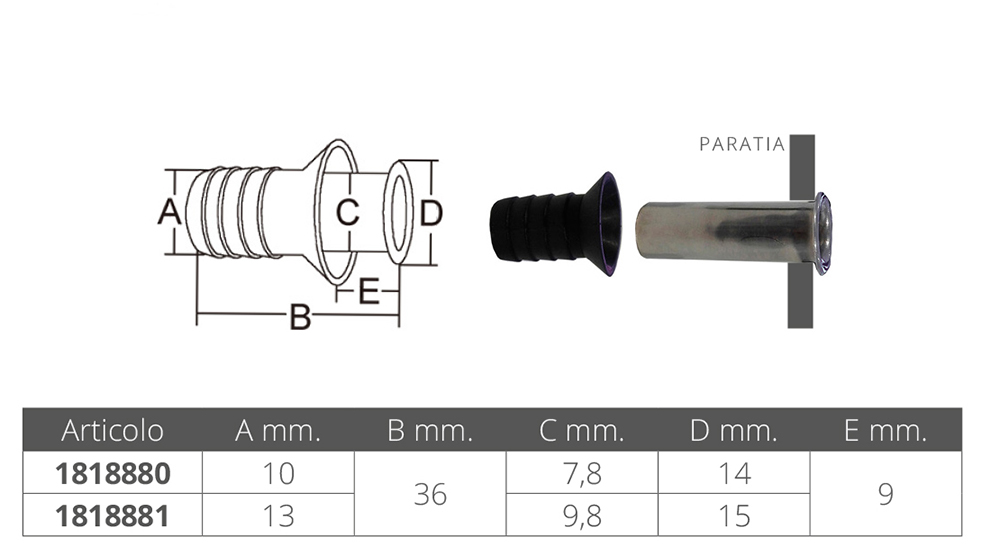 THROUGH HULL WITH HOSE CONNECTION Ø MM.10