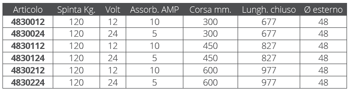 ELECTROMECHANICAL HATCH LIFTERS 12V STROKE 300 MM.