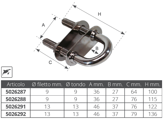 U-bolt conic fittings mirrorpolished SS 131x12.5mm