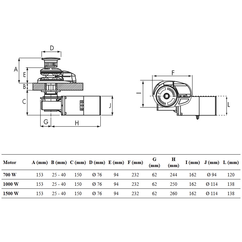 The vertical winches of the "X" series are suitable for sailing and motor boats from 6m to 27m in length.